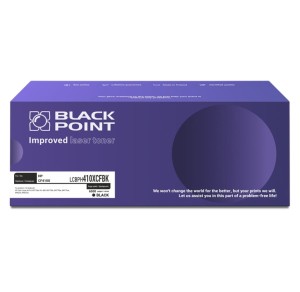 Toner laserowy Black Point LCBPH410XCFBK. Zastepuje HP CF410X. Kolor: black. Wydajnosc: 6500 str. (ISO 19752). Kompatybilny z HP Color LaserJet Pro M377dw; Pro 400: M477fdn, M477fdw, M477fnw, M452dn, M452nw, Hp 452, HP 477