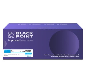 Toner laserowy Black Point LCBPH411XCFC. Zastepuje HP CF411X. Kolor: cyan. Wydajnosc: 5000 str. (ISO 19752). Kompatybilny z HP Color LaserJet Pro M377dw; Pro 400: M477fdn, M477fdw, M477fnw, M452dn, M452nw,